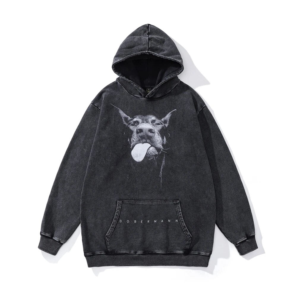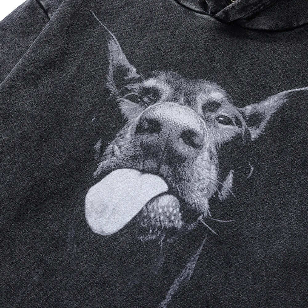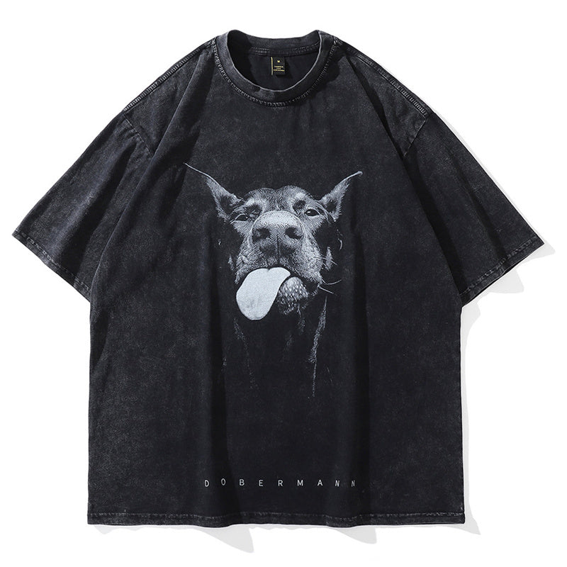 Level up your style game with the Doberman oversized collection. Made from heavy cotton in an acid washed style, this tee and hoodie boasts an eye-catching large doberman print in a perfect relaxed fit.